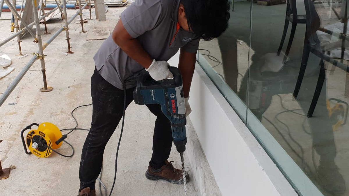 Injection through tiles: Drilling process is carried out in the sides of flooring structure for effective distribution of termiticide throughout the building.